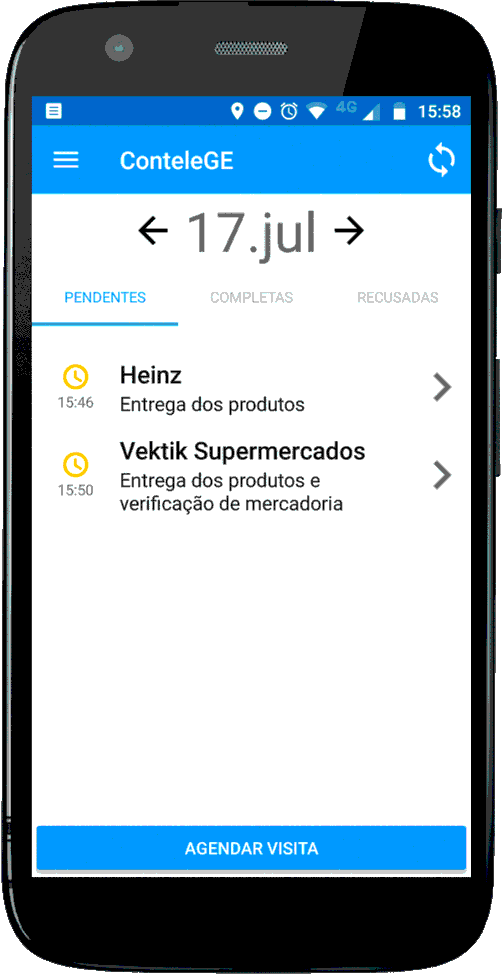 Agenda de visitas na palma da mão. com histórico de atendimentos e a carteira de clientes completa.